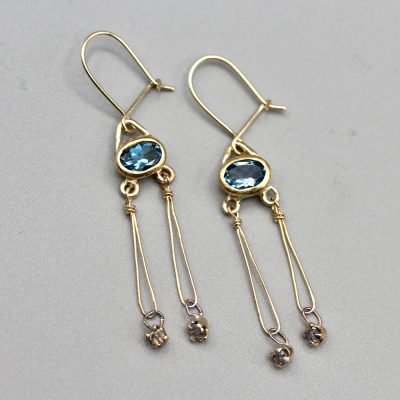Gold Aquamarine & Diamond Earrings
