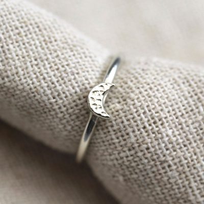 9ct White Gold Mini Textured Moon Ring